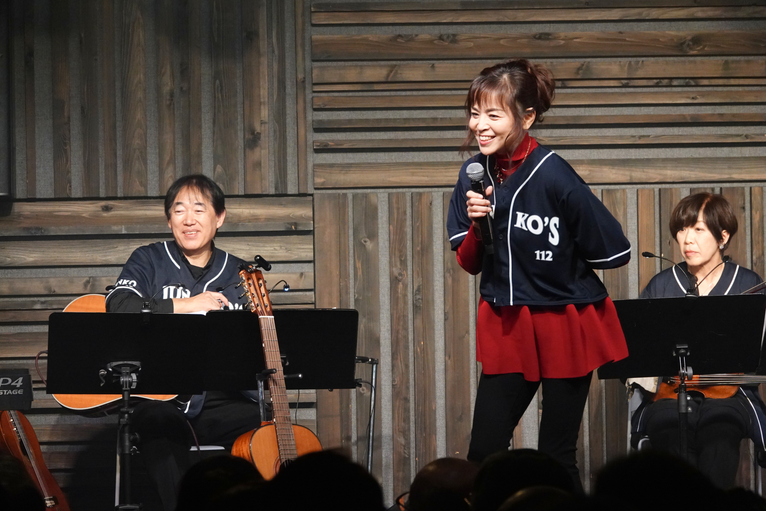 そして、この日のハイライトが、ギターの弾き語り初披露だった。「112」と背番号がプリントされた新作の応援ユニフォームをアレンジして着用し、アンコールに登場した石原はギターを手にしたのだ。この日、演奏でも石原を支えていたギタリストの近野真一氏に師事し、昨年の7月頃からギターの練習を重ねてきたという。